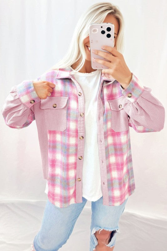 Plaid Corduroy Patchwork Shacket